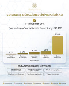 İyulun 1-dən 14-dək Elm və Təhsil Nazirliyi, eləcə də qurumlarına 38 182 vətəndaş müraciəti daxil olub. Müraciətlərin 26 451-i çağrı...