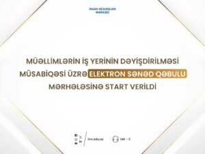Aprelin 4-dən müəllimlərin iş yerinin dəyişdirilməsi müsabiqəsinin elektron sənəd qəbulu mərhələsinə start verilib. Müsabiqədə dövlət ümumi təhsil müəssisələrində müddətsiz müqavilə...