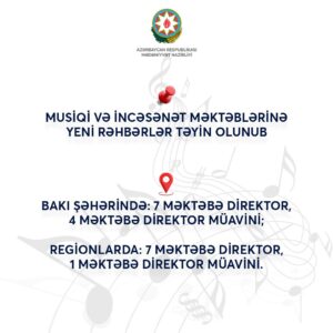 Mədəniyyət Nazirliyinin tabeliyində fəaliyyət göstərən musiqi və incəsənət məktəb və mərkəzlərinə yeni rəhbər təyinatları həyata keçirilib. Nazirlik tərəfindən təşkil olunmuş...