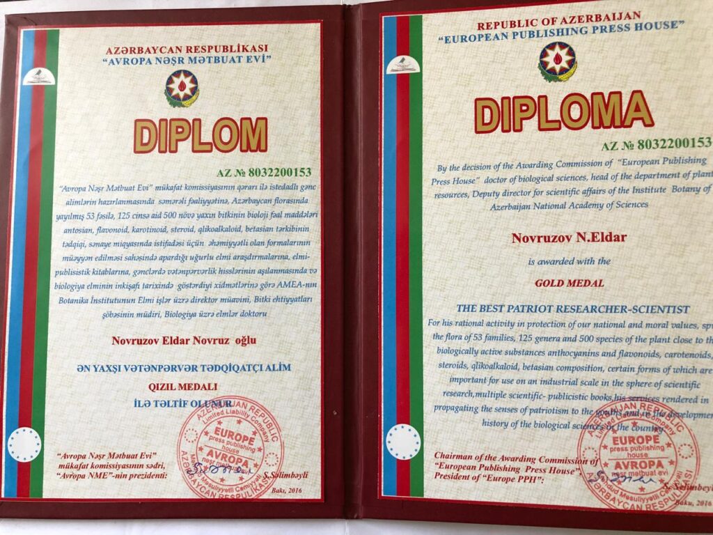 Eldar Novruzovun portreti torpağa sevgi, elmə sədaqət və dünyaya açıq bir zəkanın vəhdətidir. O, təbiətin lal dilini elmə tərcümə edən bir müdrikdir.O, bitkilərin rəngində (piqmentində) gizlənən həyat enerjisini öyrənərək, insan sağlamlığına xidmət edən düsturlar yaratdı. Bu gün onun yolu, Azərbaycanın yaşıl sərvətini qoruyan və ondan səmərəli istifadə edən gənc alimlər üçün parlaq bir mayakdır. Eldar Novruzovun elmi fəaliyyəti bir ömrün salnaməsi olmaqla yanaşı, həm də Azərbaycanın zəngin təbiətinə vurulmuş elmi möhrdür. Onun mikroskopun obyektivindən süzülüb gələn axtarışları, yarpaqların damarlarında gizlənən “canlı apteki” kəşf etməsi, botanika elmində sadəcə yeni bir səhifə deyil, bütöv bir məktəb yaratmışdır. Eldar Novruzov yüksək fəaliyyətinə görə Avropa Nəşr Mətbu evi tərəfindən “Ən yaxşı Vətənpərvər Tədqiqatçı”medalına layiq görülmüşdür. Bundan sonrakı fəaliyyətində professor Eldar Novruzova tükənməz enerji, yeni elmi zəfərlər və yaradıcılıq uğurları arzulayırıq. İnanırıq ki, onun müdrik rəhbərliyi və elmi uzaqgörənliyi ilə Azərbaycanın yaşıl xəzinəsi hələ neçə-neçə gizli kodlarını bizə açacaq. Qoy onun elm dünyasına bağışladığı “yaşıl işıq” heç zaman sönməsin, hər yeni tədqiqatı ölkəmizin adını dünya elmi arenalarında daha uca zirvələrə daşısın.