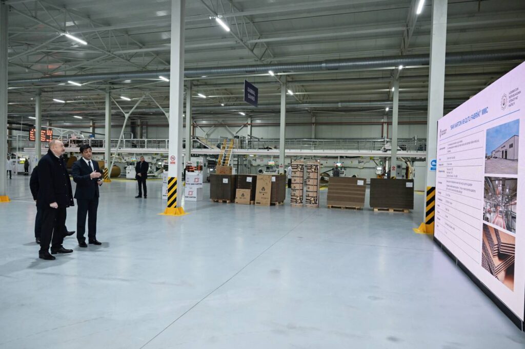 İlham Əliyev Sumqayıt Sənaye Parkında “Bakı Karton və Qutu Fabriki” MMC-nin karton və qutu taralarının istehsalı müəssisəsinin açılışında iştirak edib