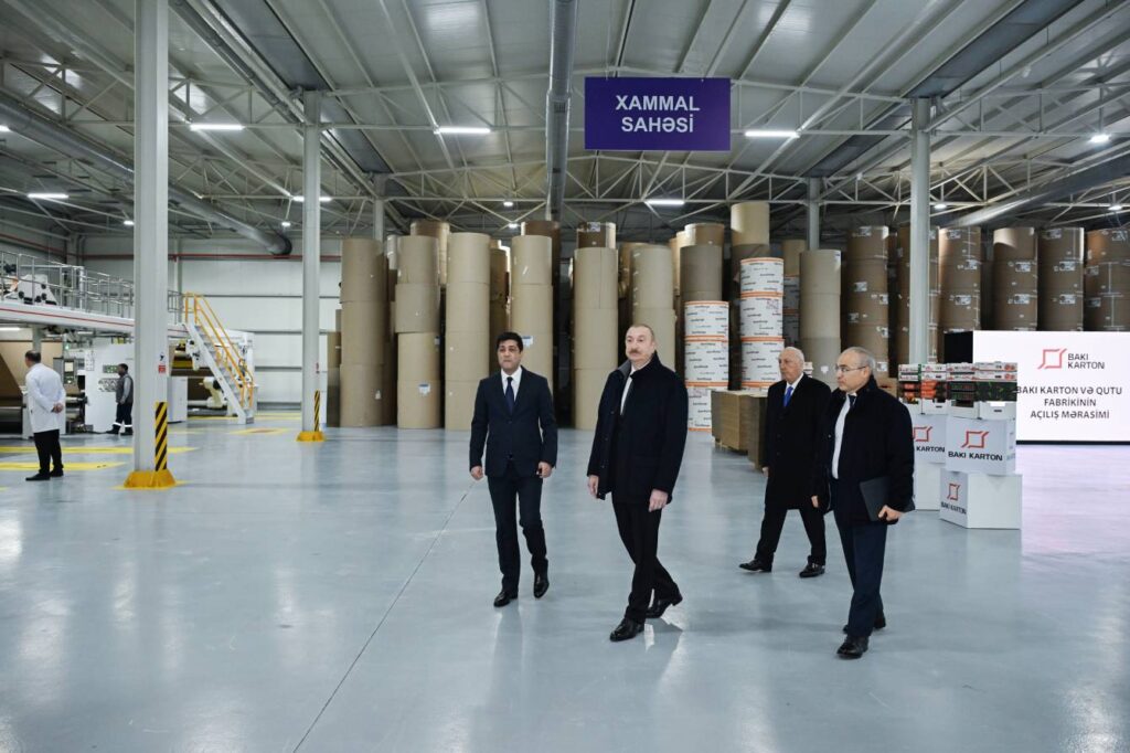 Azərbaycan Respublikasının Prezidenti İlham Əliyev yanvarın 27-də Sumqayıt Sənaye Parkında “Bakı Karton və Qutu Fabriki” MMC-nin karton və qutu taralarının istehsalı müəssisəsinin açılışında iştirak edib.