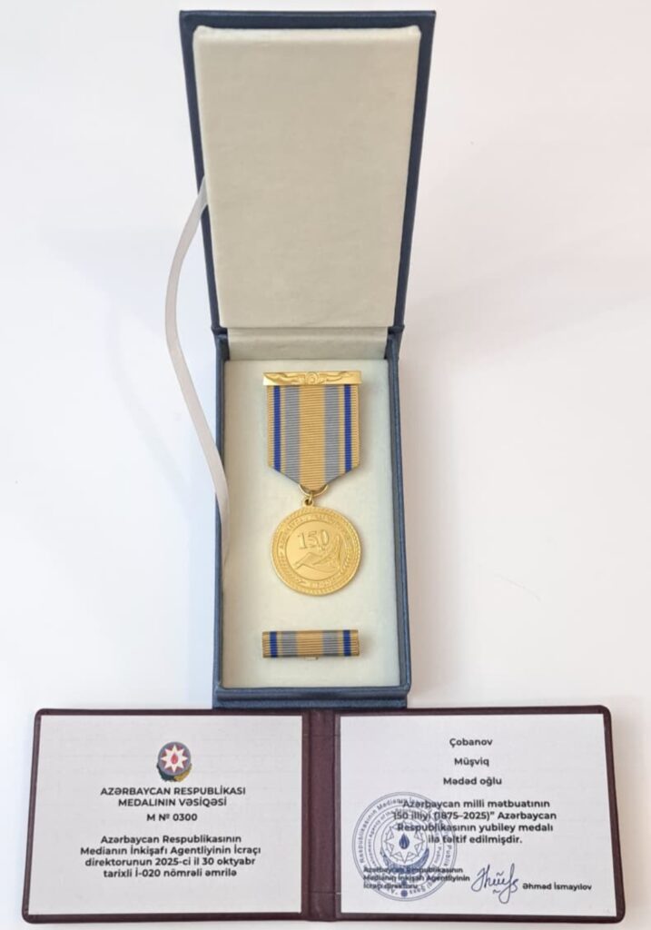 Azərbaycan milli mətbuatının 150 illik şanlı tarixi təkcə qəzet səhifələrində deyil, bu missiyanı ləyaqətlə daşıyan ziyalıların taleyində, ömür yolunda və ictimai mövqeyində yaşayır. Bu baxımdan çağdaş Azərbaycan mediasının simasında mühüm yer tutan, sözə məsuliyyətlə yanaşan, qələmi vicdanın tərəzisində ölçən ziyalılardan biri də Müşfiq Borçalıdır (Müşviq Mədəd oğlu Çobanov). Onun “Azərbaycan milli mətbuatının 150 illiyi (1875–2025)” yubiley medalı ilə təltif olunması təsadüfi bir hadisə deyil, uzun illərin fədakar əməyinə, prinsipial mövqeyinə və milli düşüncəyə sədaqətinin rəsmi təsdiqidir.
