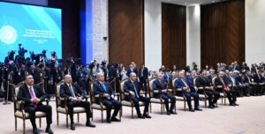 Dövlət Bayrağı nümayiş etdirilir. Salonda Prezident İlham Əliyevin imzaladığı “Azərbaycan Respublikasının paytaxtı Bakı şəhərində Dövlət Bayrağı meydanının yaradılması haqqında” 2007-ci...